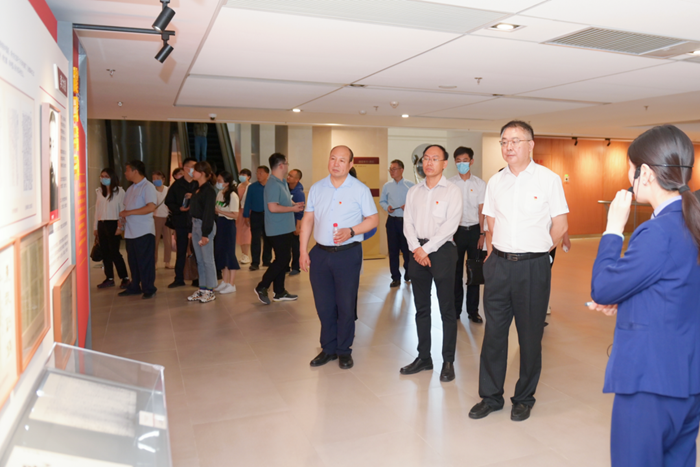 大家驻足于记述着厚重历史的一份份档案前,好像荡漾在波澜壮阔的历史长河中。在主题展览的学习中,党员同志们再次感受到以建党精神为首的抗战精神、改革开放精神、长征精神等精神谱系的洗礼。
