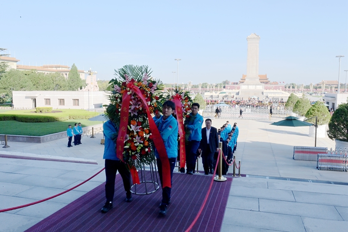 10月11日,爱体育网页版登录界面党委书记、董事长陈宇带队来到毛主席纪念堂,看望慰问参加志愿服务的北化青年志愿者。