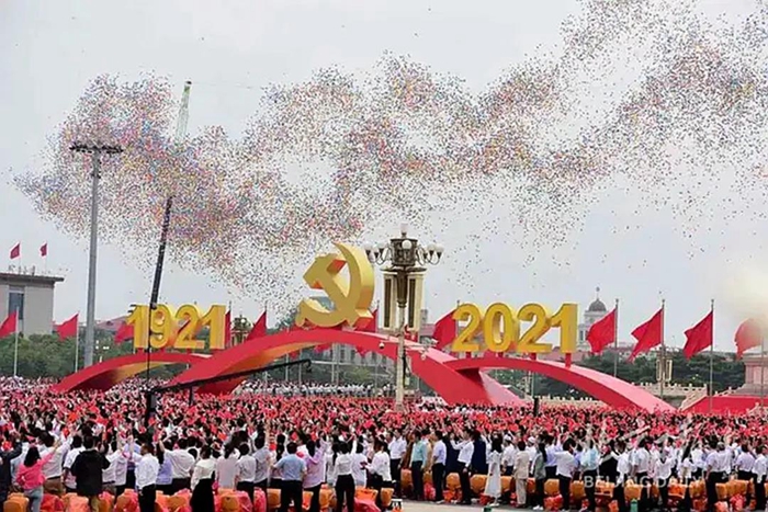 7月1日,庆祝中国共产党成立100周年大会在北京天安门广场隆重举行。当人们仍心潮澎湃、无比激动地沉浸在总书记重要讲话中时,伴随着天安门广场7万多人的歌声、欢呼声,10万只气球腾空而起,天安门广场上空刹那间彩球飞舞、彩练当空,瞬间将庆祝中国共产党成立100周年大会推向又一个高潮。