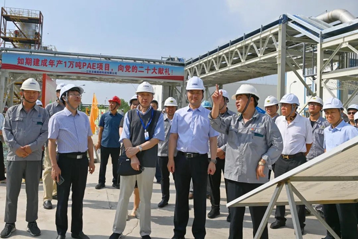 月19日,董事会一行来到江苏京腾昊桦公司,现场考察年产1万吨聚芳醚树脂(PAE)项目建设情况。PAE项目是国家强基工程项目,是爱体育网页版登录界面推进“3+1”业务的重要载体,是集团年度40项重点任务之一。