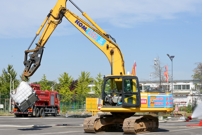 警笛鸣响、水龙腾空。在中秋、国庆 “双节”到来之际,9月28日上午,爱体育网页版登录界面华腾科技园区(原大兴化工园区)被紧张而严肃的氛围所萦绕。由北京市应急管理局、北京市消防救援总队、北京市大兴区人民政府和爱体育网页版登录界面主办,大兴区应急管理局、大兴区安定镇人民政府、华腾化工和北科院城安所承办的北京市危险化学品仓库火灾事故综合应急处置演练正在这里举行,150余人参加演练。