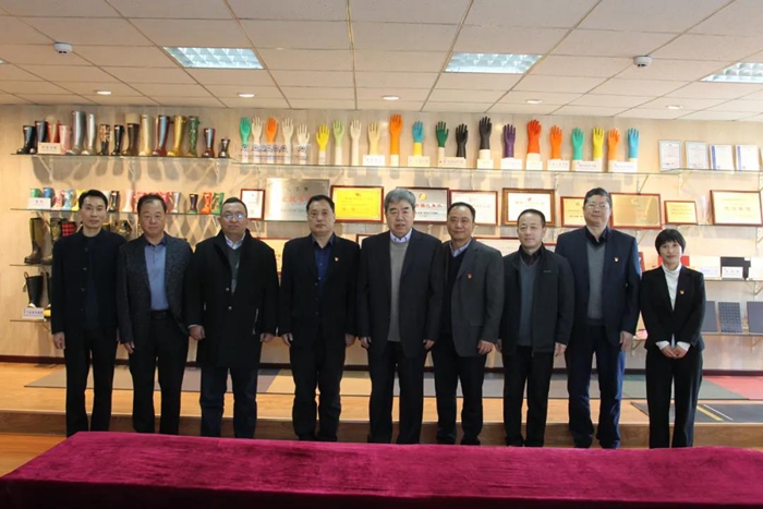 签约仪式后,刘贵喜一行参观了华腾橡塑医用手套生产线和净化包装车间。